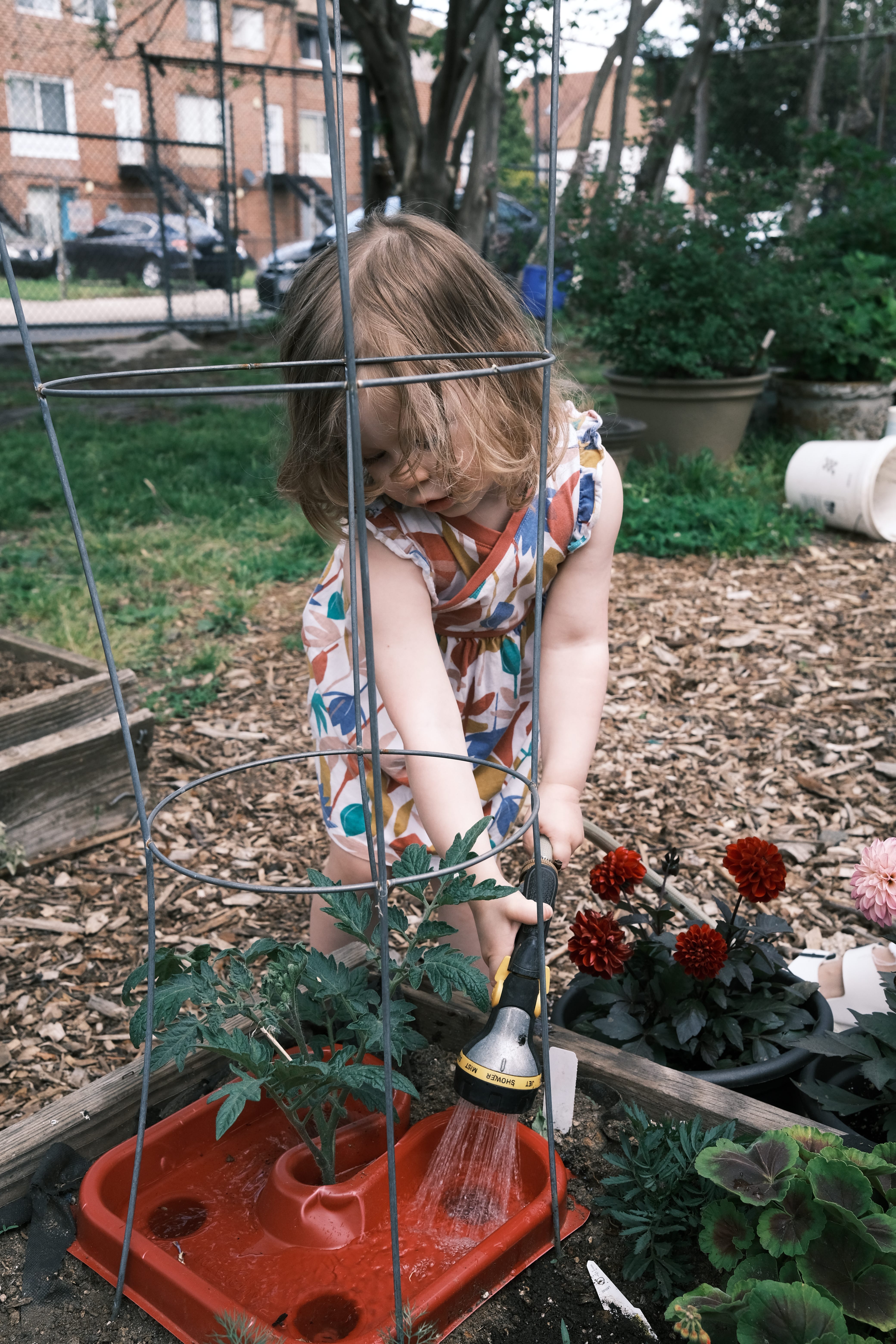 The weather is absolutely beautiful here in Philadelphia. I rode my bicycle through town several times this week, and the whole family went to our community garden plot to water the tomatoes and Louisa picked a flower. These are all digital photos taken with the Fuji X100V.